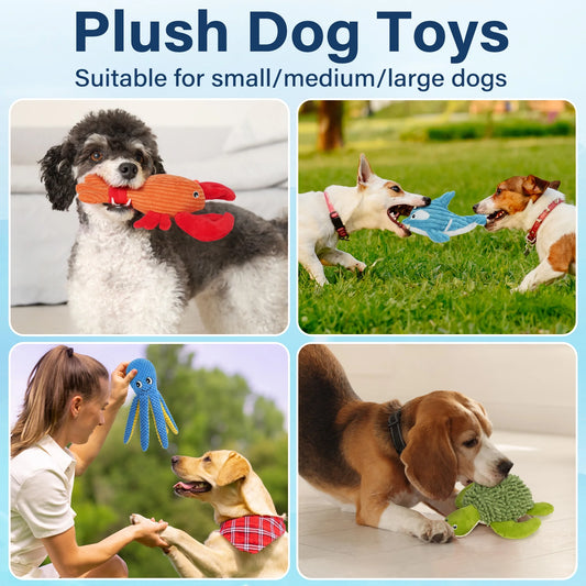 Dog Toys, 5Pc Plush Ocean Animal Dog Squeaky Toy, Crinkle Pet Toy, Stuffed Puppy Chew Toys
